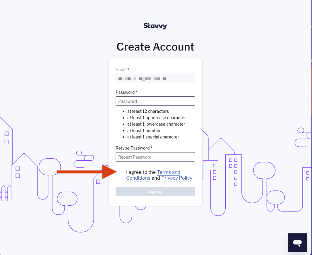 If you are trying to create your Stavvy account and cannot find the checkbox required to agree to the Terms and Conditions and Privacy Policy, this guide will help you resolve the issue.